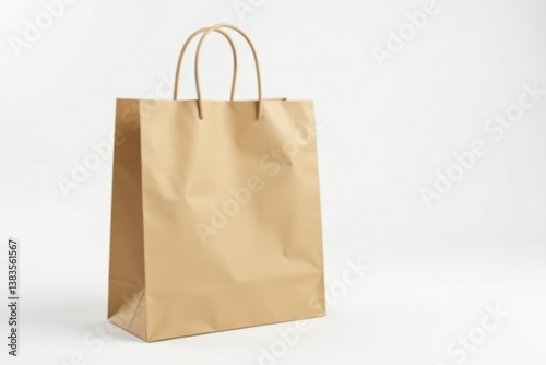 Empty brown paper shopping bag on white background, illustration, studio, template