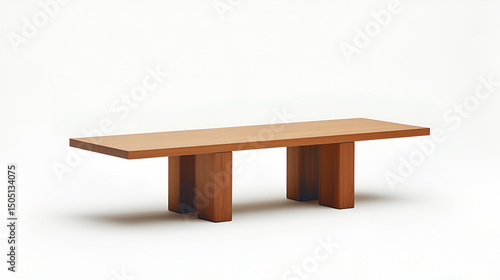 Empty brown wooden table and bench isolated on white background