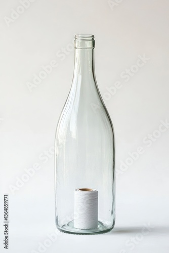 Empty Clear Glass Bottle with White Thread Roll Inside Decoration