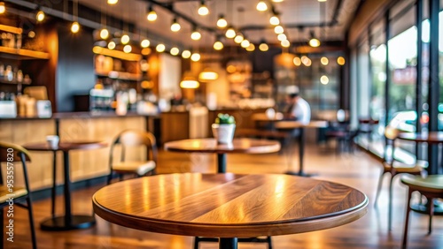 Empty coffee table in a defocused coffee shop background with space for text, Coffee shop, table, empty, blurred, cafe, interior