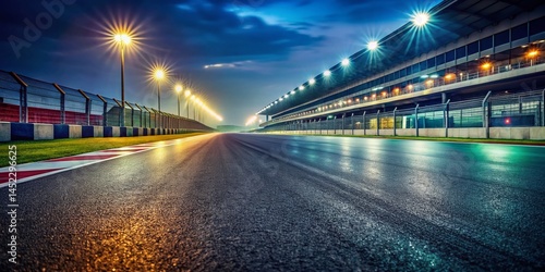 Empty F1 Race Track at Night: Smooth Asphalt, Speed & Anticipation
