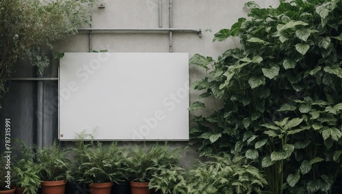Empty frame covered with ivy on the wall on a white background For an advertising location
