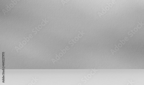 Empty gray room studio for product presentation with sunlight effect shadow on the wall and floor. Minimal grey room backdrop design concept.