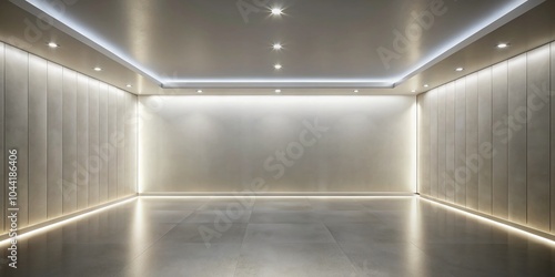 Empty Hall Room with Blank Light Wall and Floor Featuring LED Lighting for Mockup Use