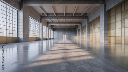 Empty Modern Industrial Space with Concrete Structure and Natural Illumination