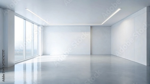 Empty Modern Room with Large Window and Polished Floor, Ideal for Presentations or Displays