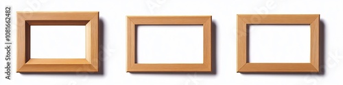 Empty Natural Wooden Rectangular Photo Frames on Isolated White Background