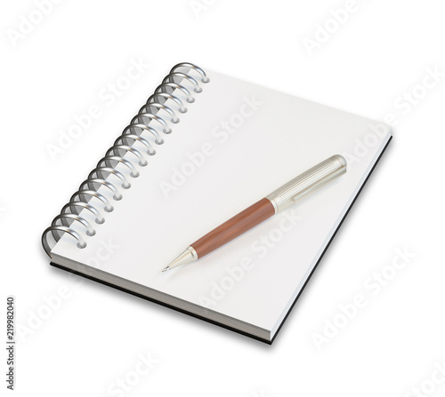 Empty notepad (sketch book) with pen isolated on white background