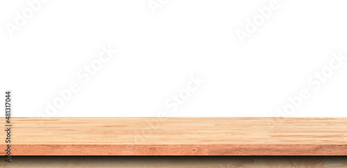 Empty old wood table on isolate white background and display montage with copy space for product.