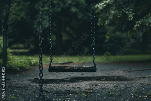 Empty Playground. Abandoned Swings in Black-and-White Background with Copy Space