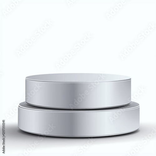 Empty podium or pedestal display on gray background with cylinder stand. Circular podium on gray studio background. Silver podium, product stand