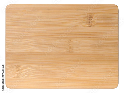 Empty rectangular wooden oak kitchen cutting board. White background, top view