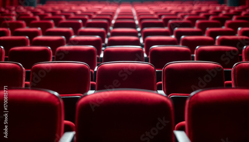 Empty red velvet theater seats receding into depth