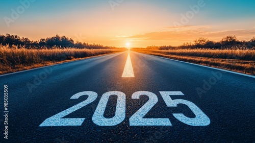 Empty Road Leading to 2025 with Arrow Towards Bright Future
