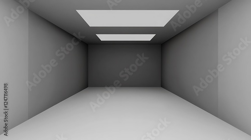 Empty room, grey walls, ceiling lights, background