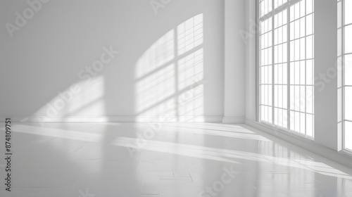 empty room wall and floor interior background, empty space, White room with light from a large window.