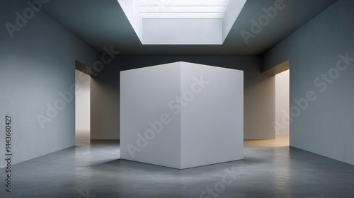Empty room with a skylight above it. the room has a concrete floor and walls, and there are two large windows on either side of the room.