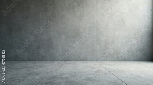 Empty Room with Grey Concrete Wall and Floor, Ideal for Product Placement and Backgrounds