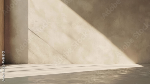 Empty room with minimalist warm taupe wall background with sun shadow for product presentation