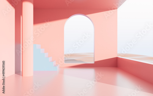 Empty room with stairs, 3d rendering.