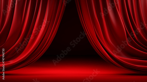 Empty scene with a red curtain and spotlights. Concert, show, performance