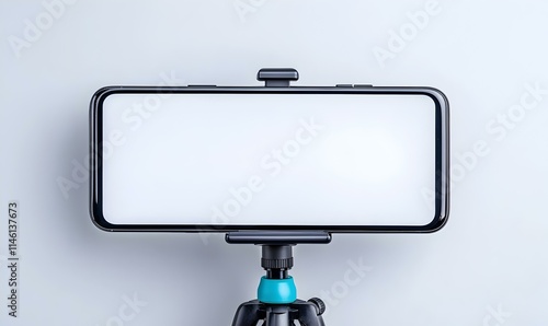 Empty Smartphone Screen Mounted on Tripod Against Light Background