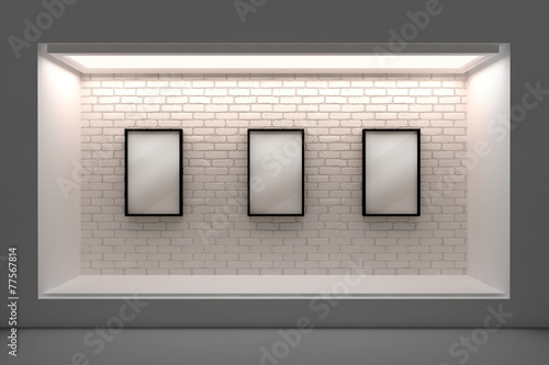 Empty storefront or podium with lighting and a big window