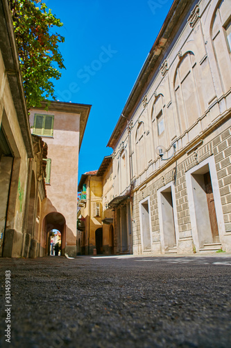 Empty Street in the Italian town Fossano in Province Cuneo, Region Piedmont, northern Italy.
