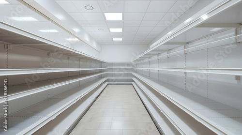 Empty supermarket shelves during food shortage crisis showing economic crisis or global pandemic