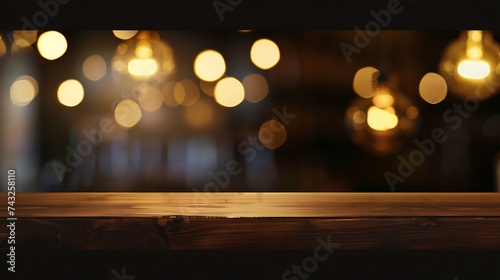 empty table on dark background with blurred lamps cafe restaurant bokeh for your product or customization : Generative AI