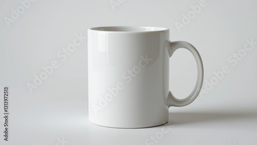 Empty White Ceramic Mug with Handle Isolated on a Minimalist Background for Beverage Presentation