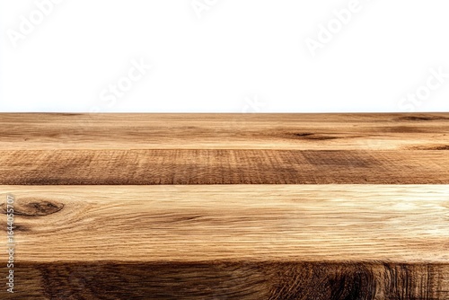 Empty Wood Planks Surface with White Background, Perspective View, Natural Texture