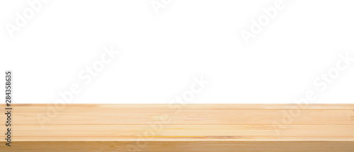 Empty wood table top isolated on white background
