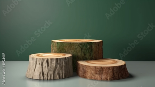 Empty wooden podium for product presentation, Natural materials mockup for cosmetic advertising.Generative AI.