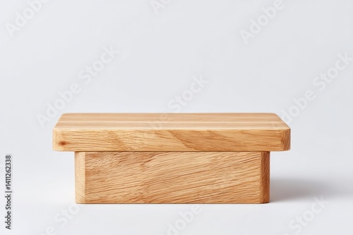 empty wooden podium set on plain white background showcasing minimalistic and clean design with ample copy space