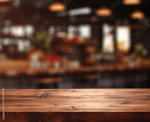 Empty wooden table for product demonstration and presentation on the background of blurred of a supermarket or grocery store