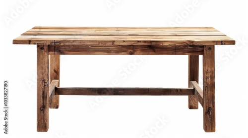 Empty Wooden Table Front View Isolated on a White Background - Ideal for Product Display and Minimalist Decor