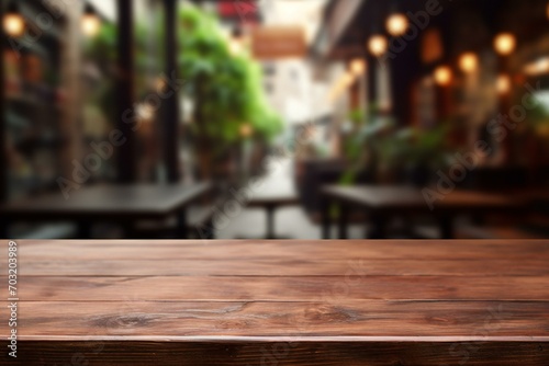 Empty wooden table on blurred restaurant background. Empty table for product display