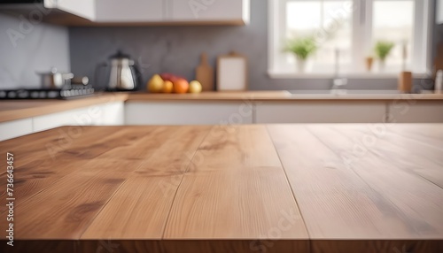 Empty-beautiful-wood-table-top-counter-and-blur-bokeh-modern-kitchen-interior-background