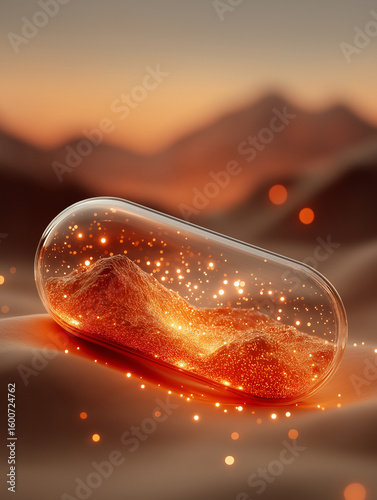 Encapsulated Innovation: A captivating visual of a vibrant, glowing capsule, symbolic of advanced science and potential solutions, resting against a smooth, textured surface.