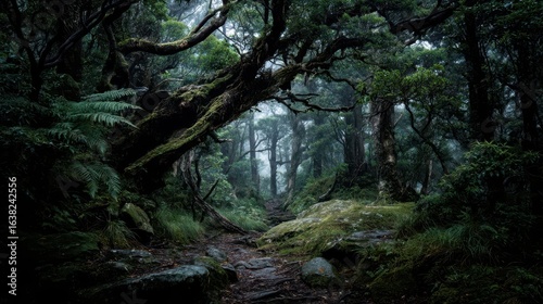 Enchanted Ancient Forest with Mist and Wandering Spirits