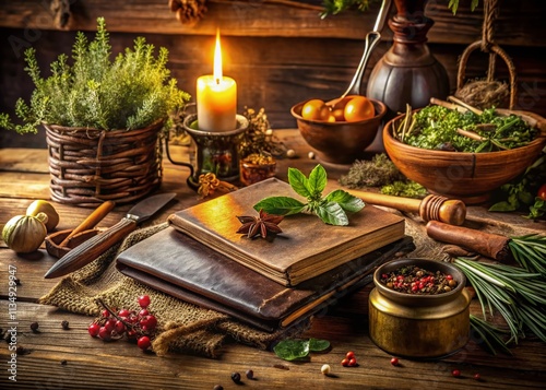 Enchanted Culinary Journey: A Spellbook Diary Blending Magic and History with Exquisite Food Photography Capturing Delicious Dishes and Ancient Recipes in a Mystical Setting