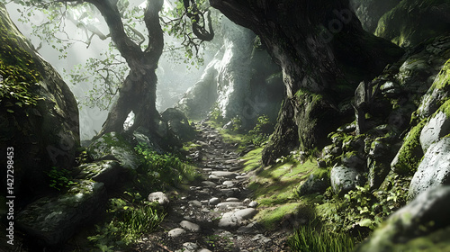 Enchanted Forest Pathway Through Lush Greenery
