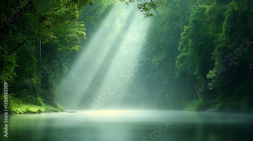 Enchanted forest serenity dreamlike river reflections in tranquil nature photography