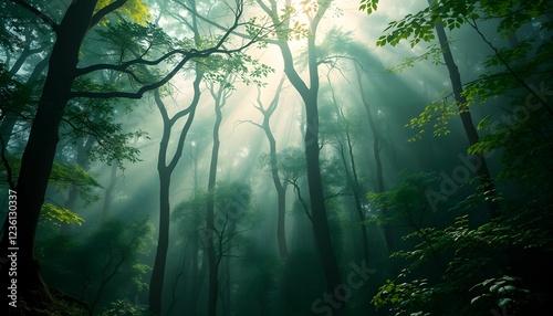 Enchanted Forest: Sunbeams Dance Through Ancient Trees