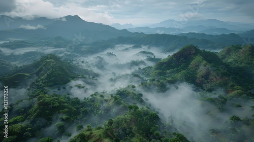 Enchanting 3d jungle landscape a foggy forest oasis with lush greenery and mystical vibes