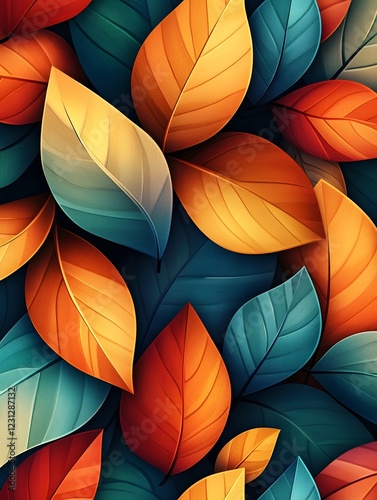 Enchanting Decorative Autumn Leaf Pattern with Vibrant Abstract Cubist Style Composition