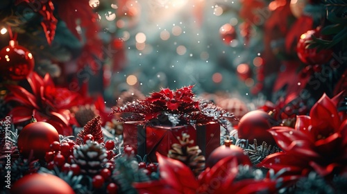 Enchanting Fusion: Christmas Gifts, Ornaments, Plants, and Snowflakes with Color Gradient Waves