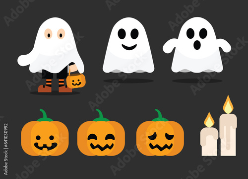 Enchanting Halloween Vector: Pumpkin, Ghost, Witch, and Spider in Isolated Illustration