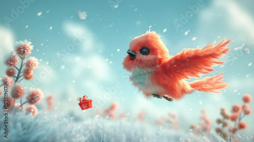 Enchanting Journey of a Whimsical Orange Bird Delivering a Gift in a Winter Wonderland